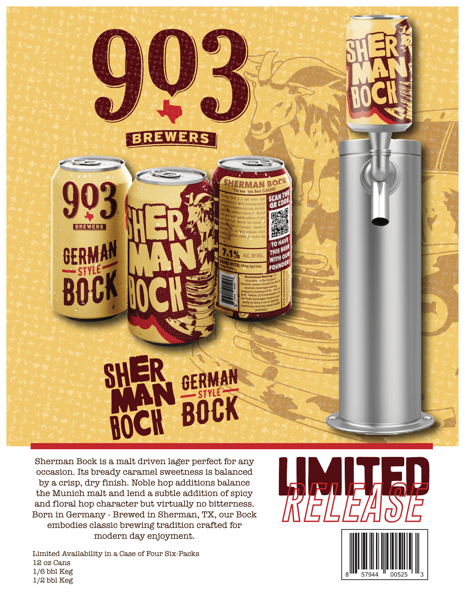 This German-style bock is like a victorious march for your taste buds, with every sip paving the way to a land of malty splendor and toasty triumph. Just like the tank, it's a force to be reckoned with, boasting a robust profile that commands your attention and respect. As you savor the caramel notes and hints of roasted excellence, you'll feel like you're conquering the taste battlefield one delicious drop at a time. So, whether you're a history buff, a beer enthusiast, or just someone ready to salute a stellar brew, enlist your senses for an adventure with 903 Brewers Sherman Bock. Tank-inspired taste has never been this tantalizing! LIMITED EDITION!